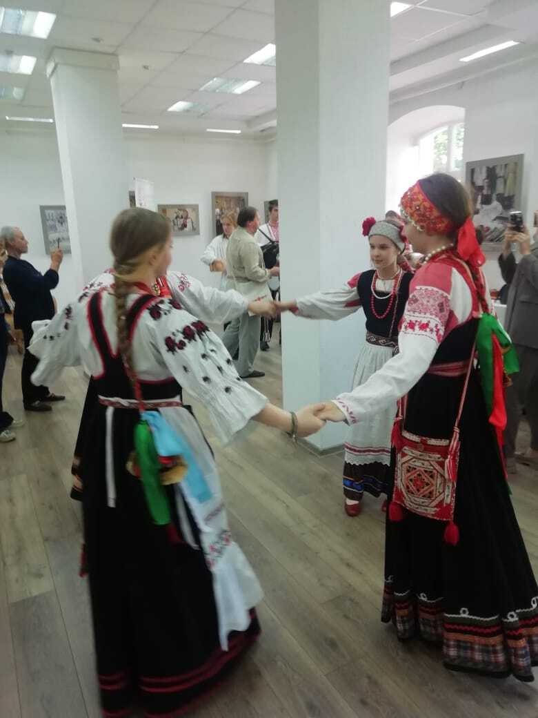 Открыла выставку руководитель проекта, Председатель Правления Смоленского областного отделения Международного общественного фонда «Российский фонд мира» Ульяненкова Елена Александровна. Церемония открытия получилась не столько торжественной, сколько тёплой, душевной и даже весёлой. Скучать собравшимся не давали гости: Ансамбль «Исторической и обрядовой музыки Смоленщины» из Десногорска (руководитель – Владимир Платонов) и Театр-студия «Алёнушка» из Смоленска(руководитель – Елена Леднёва). Старинная музыка и обрядовые песни и танцы стали прекрасным дополнением к тематическим сюжетам, представленным в экспозиции.