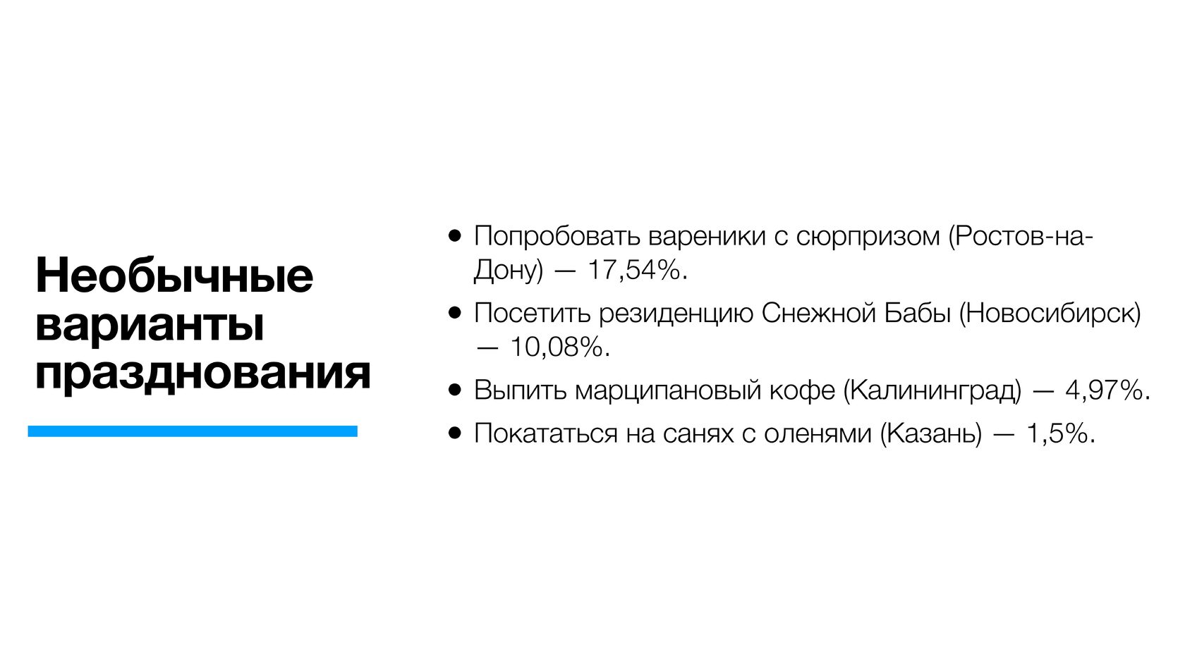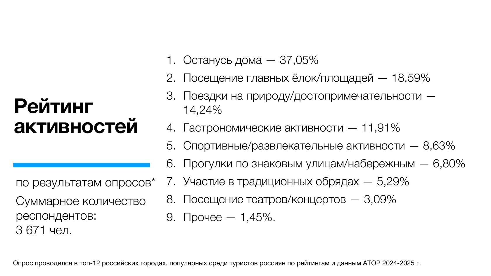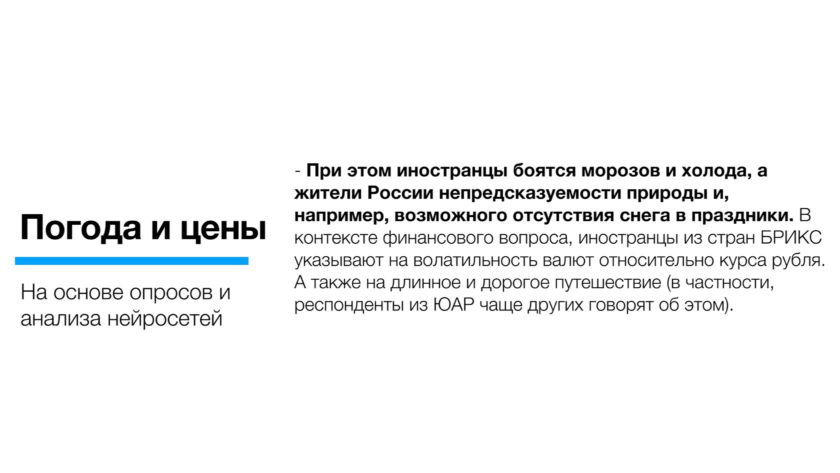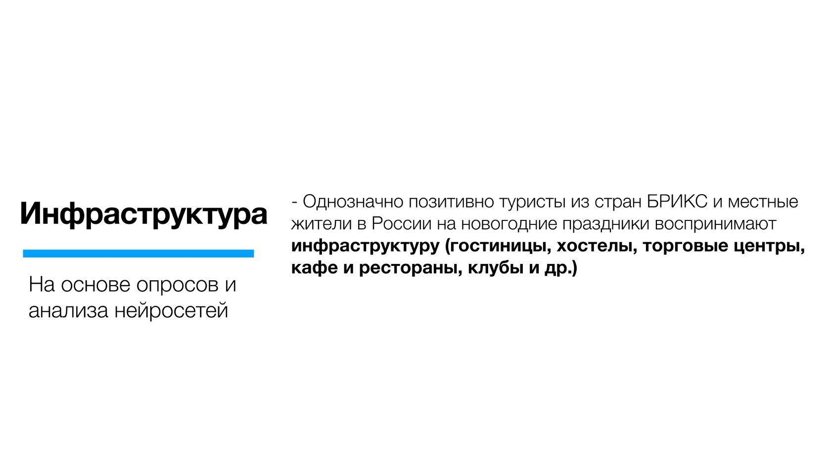 Россияне в целом выше оценили новогодние покупки в стране (почти вошли в топ-3 по позитивному отношению) по сравнению с иностранцами. По-видимому, для значительной части опрошенных зарубежных туристов значимым может быть частичное отсутствие ряда брендов, распространенных в мире.