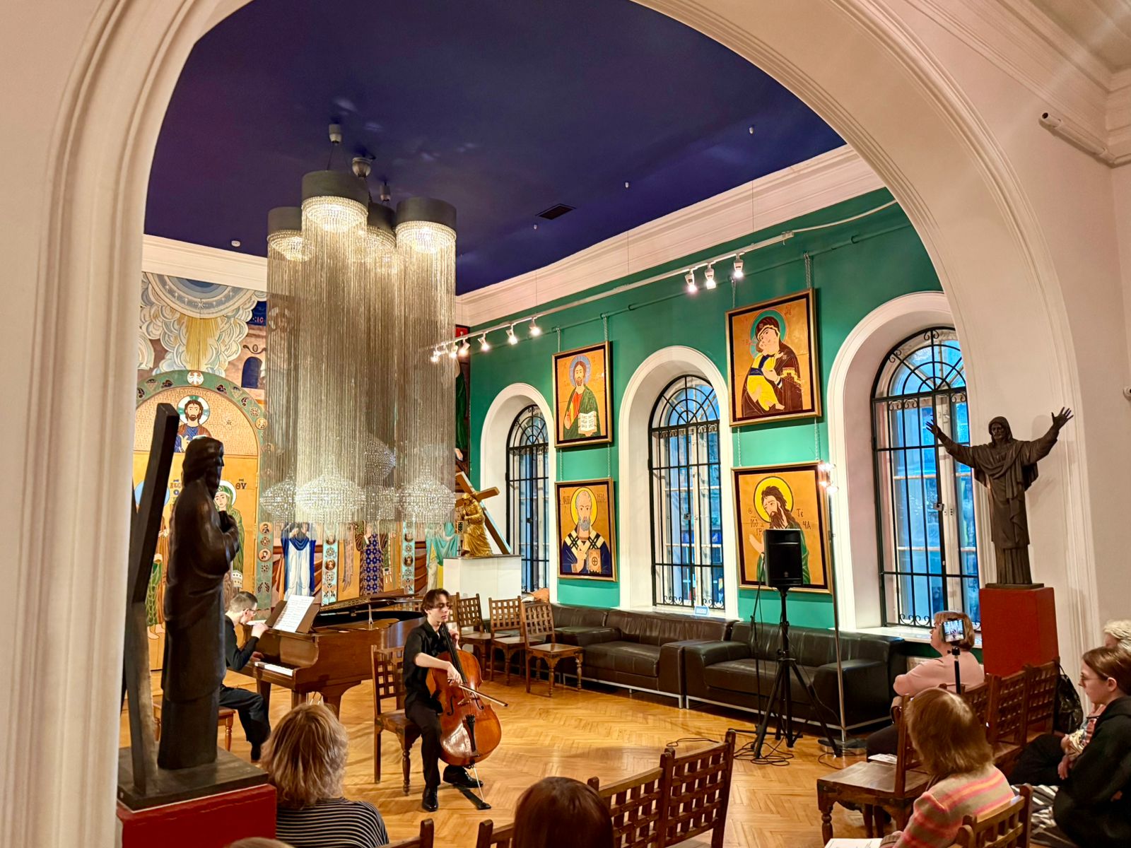 В завершение мероприятия всех гостей ждала концертная программа в исполнении участников XII Московского виолончельного фестиваля «Виолончельные поколения» под руководством народного артиста РФ, профессора Владимира Тонхи.