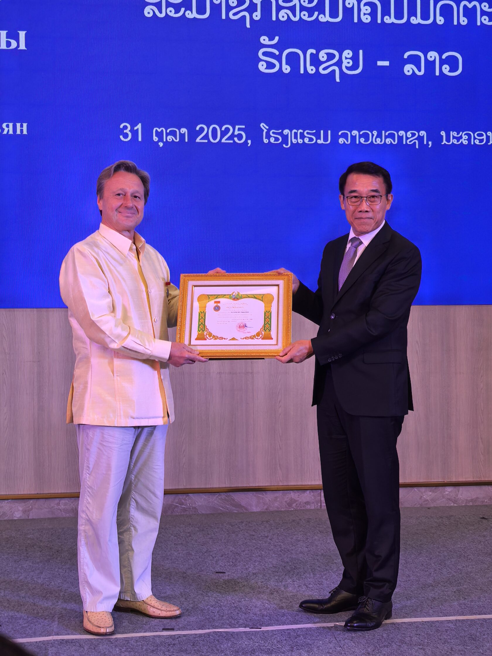 В знак признания заслуг в укреплении двусторонних связей Центральный комитет по внешним связям Лаоса наградил Орденом Дружбы Правительства Лаоса представителей Общества Российско-Лаосской дружбы Алексея Салимона и Владимира Фокина, внесших выдающийся вклад в сотрудничество с Лаосом. Со своей стороны, представители Общества дружбы Россия-Лаос вручили медаль «60 лет Обществу дружбы» четырем лаосским руководителям за их лидерскую роль в развитии отношений.