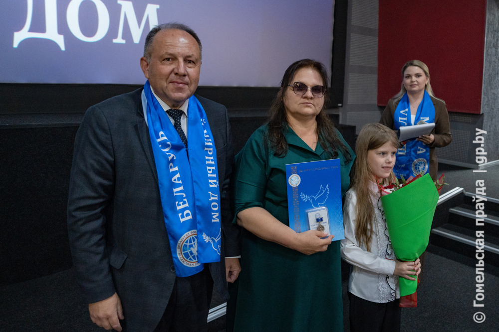 Почетную медаль Белорусского фонда мира «Во имя мира дружбы и добра!» вручили приемному родителю-воспитателю детского дома семейного типа отдела образования, спорта и туризма администрации Новобелицкого района Гомеля Елене Рабской.