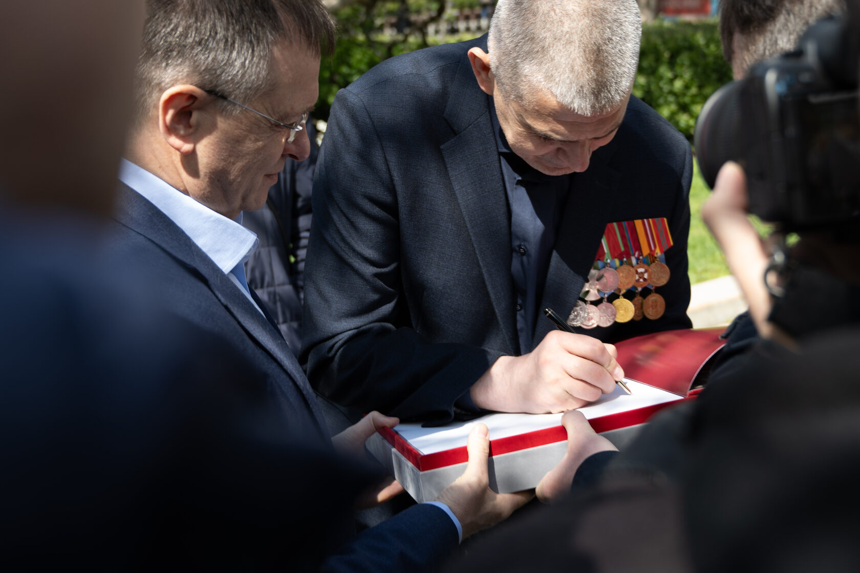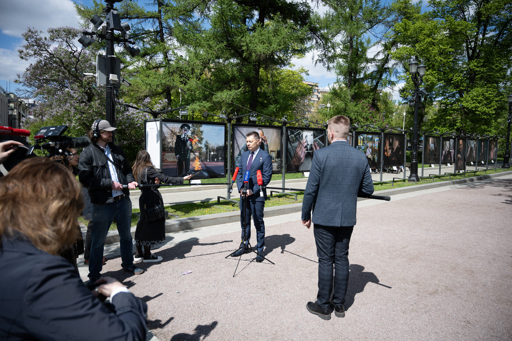 В торжественной церемонии открытия выставки приняли участие помощник Президента РФ, Председатель Российского военно-исторического общества Владимир Мединский, командир отряда космонавтов Госкорпорации «Роскосмос», Герой Российской Федерации, вице-президент Советского фонда мира Олег Кононенко, Первый заместитель Председателя Правления Международного общественного фонда «Российский фонд мира», Первый Вице-президент Советского фонда мира Елена Сутормина, Исполнительный директор Московского музея современного искусства, исполняющий обязанности президента Российской академии художеств РАХ Василий Церетели, Председатель Союза фотохудожников России Дмитрий Иванов, Исполнительный директор Российского военно-исторического общества Виталий Мартынюк, Вице-президент Творческого союза художников России Константин Марков, Председатель Совета фонда развития искусства и фотографии им. Петра Барышникова Николай Канавин.