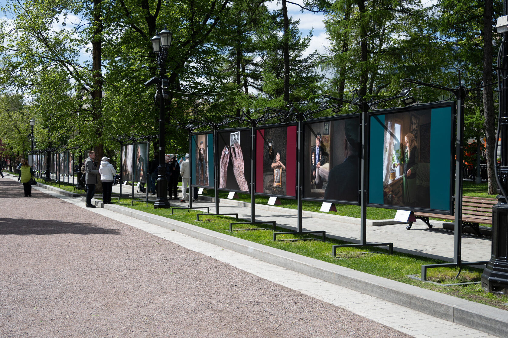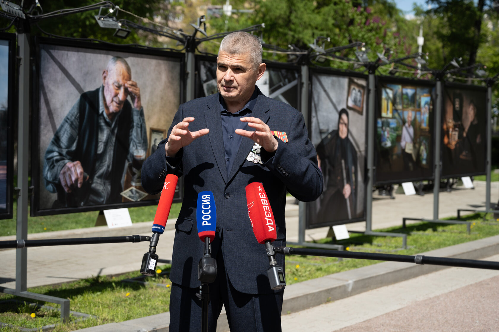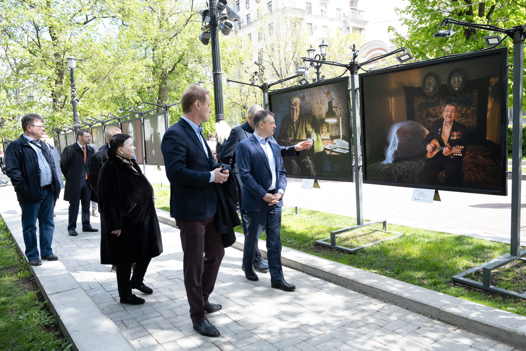 Автор выставки провел для собравшихся краткую экскурсию.«Меня многие спрашивают почему я решил снимать ветеранов. Если честно, не знаю, как отвечать на этот вопрос. Мои дедушки воевали, бабушки были труженицами тыла. Мой отец, полковник Смольников, тридцать три года отдал Армии, служил в десантных войсках. Вся моя семья имела отношение к военной службе. Поэтому для меня эти вещи святые. К этому относишься с большим трепетом, уважением и любовью. Я горд тем, что смог увековечить память о ветеранах. Меня не будет, но эти люди останутся в моих фотографиях. Говорят, что фотография забирает часть души человека. Вот эти души, представленные на фотографиях, будут здесь, в Москве, в этот святой День Великой Победы», — сказал Андрей Смольников.