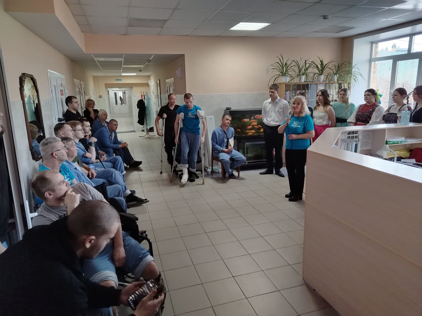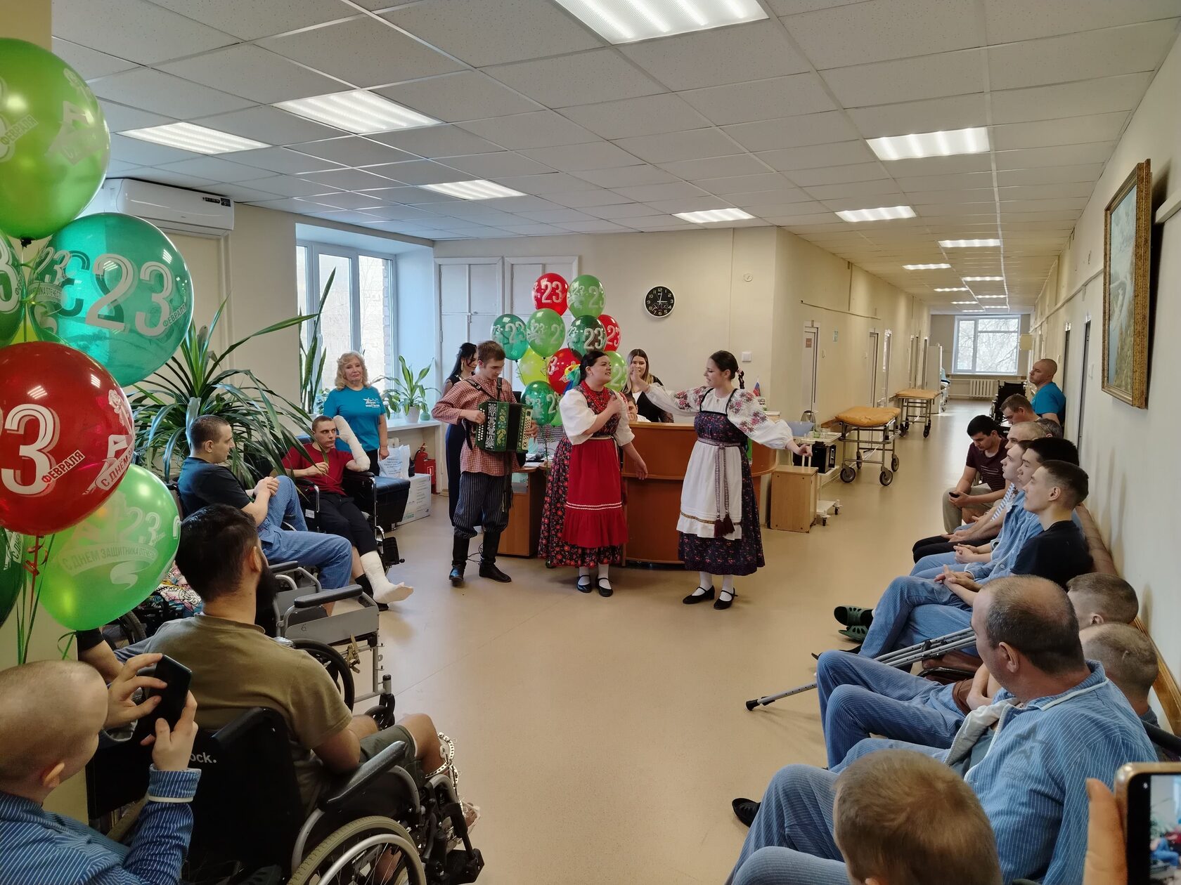 19 февраля 2026г. для поздравления с Днем защитника Отечества с подарками Самарский областной фонд мира приехал в госпиталь «ВГ №426» Министерства обороны РФ. Концерты проходили, не как обычно в клубе военного госпиталя, а непосредственно в холлах лечебных отделений, чтобы могли поблагодарить и поднять настроение, прежде всего бойцов с тяжелыми ранениями, которые не в состоянии дойти до клуба, да еще в холодную ветреную погоду. Концертные программы были подготовлены студентами Самарского областного училища культуры и искусств и получились очень эмоциональными и яркими. Звучали песни о героизме наших парней, патриотизме и любви к Родине, лирические песни. Ведущая концерты студентка 3-го курса училища культуры Ангелина Брусенцева трогательно исполнила песни «За защитников нашей страны» и «Ты только держись, русский солдат». Для поднятия настроения раненым под гармонь студента училища культуры Андрея Маликова студентки Ангелина Петрянина и Яна Аненкова в народных костюмах исполнили зажигательные частушки. Бойцы аплодисментами встречали и провожали каждый номер. Затаив дыхание, слушали песню «Русский парень» в исполнении студента Самарского училища культуры Игнатия Румянцева, а песню «Нам нужна одна Победа!» подпевали все присутствующие.
